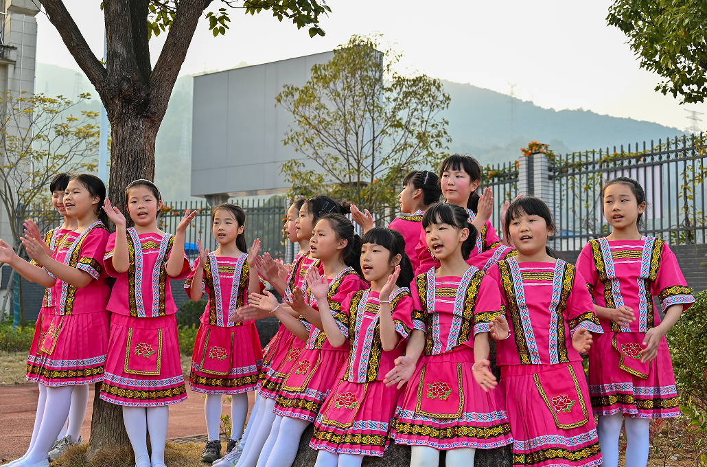 如今,畬歌、畬語(yǔ)、畬族剪紙等已是金涵畬族鄉(xiāng)校園里的常態(tài)化教學(xué)內(nèi)容。每逢“三月三”等畬族傳統(tǒng)佳節(jié),校園更化身為文化盛會(huì),畬族體育競(jìng)技、畬族美食品嘗等活動(dòng)輪番上演,學(xué)生們?cè)跉g樂(lè)的氛圍中沉浸式體驗(yàn)本民族文化,文化自信與認(rèn)同感油然而生。