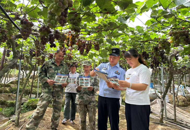 又是一年葡萄豐收季,近日,壽寧縣鳳陽(yáng)派出所組織民警輔警走進(jìn)葡萄園開展普法宣傳,將警務(wù)工作帶到田間地頭,著力打通服務(wù)豐收的“最后一公里”。