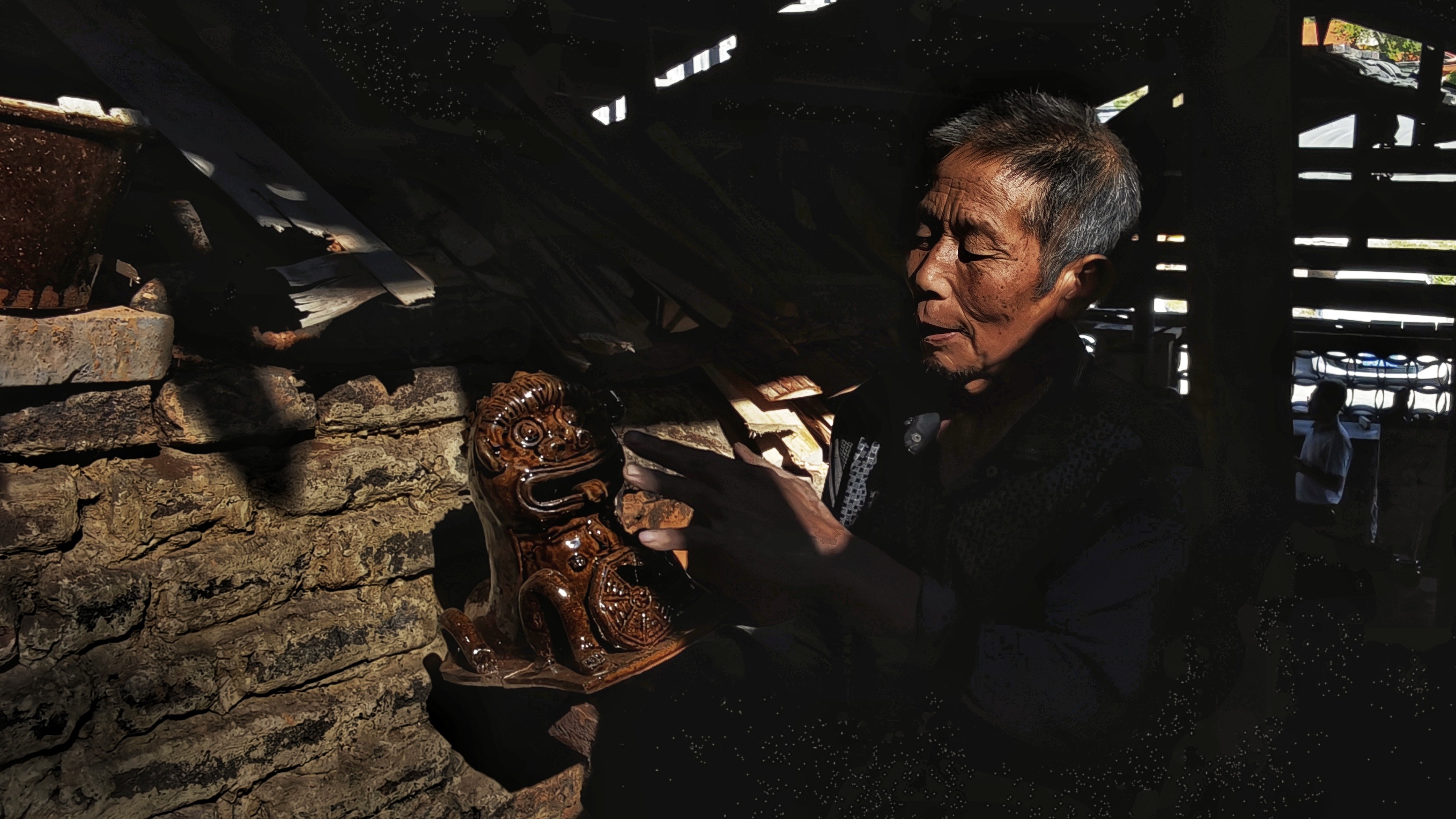 秋日午后,周寧縣萌源村月山古龍窯,肖家漲、肖永燦父子正打開窯口,近千件柴火燒制的傳統(tǒng)硋器一一面世。