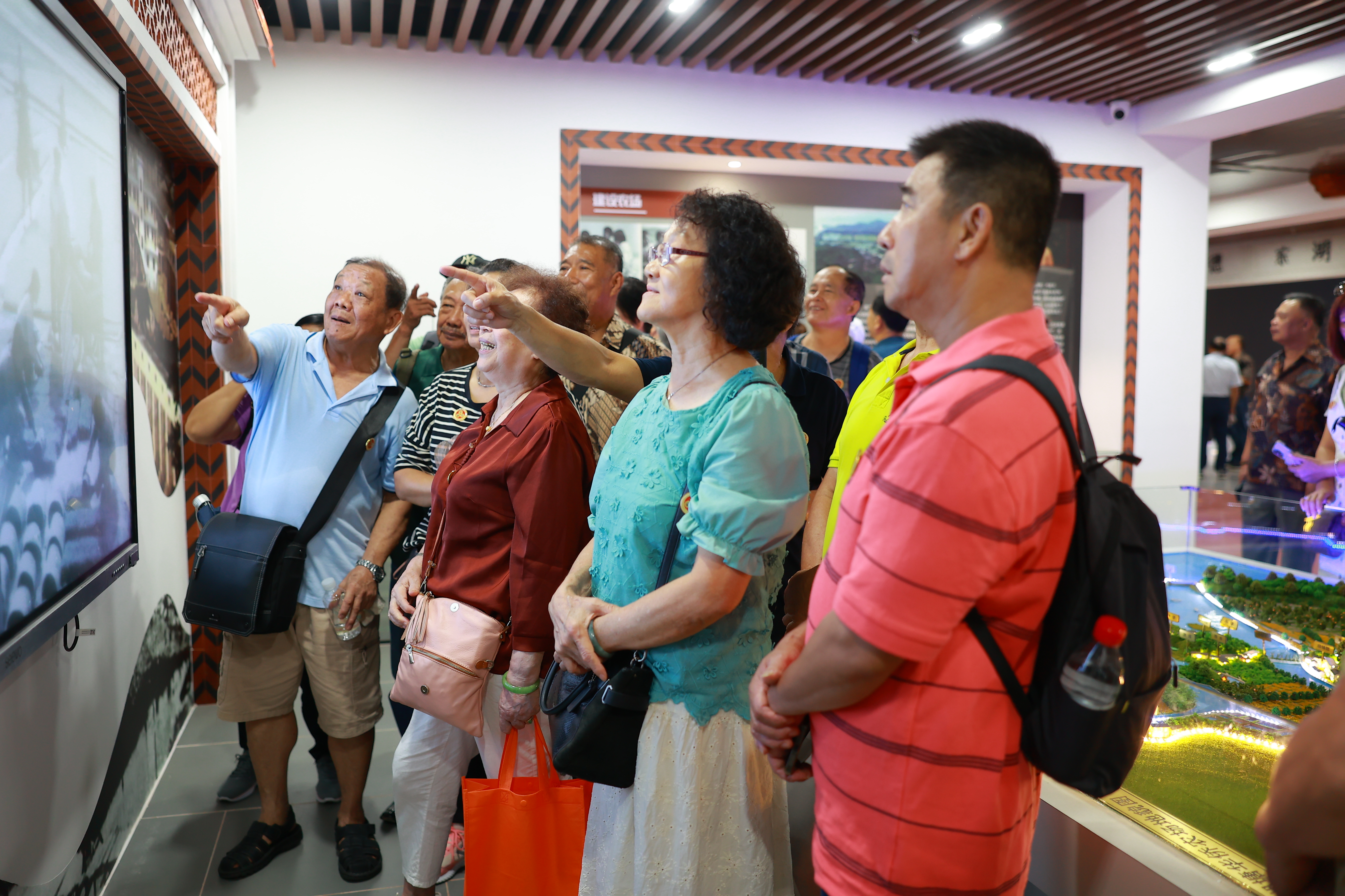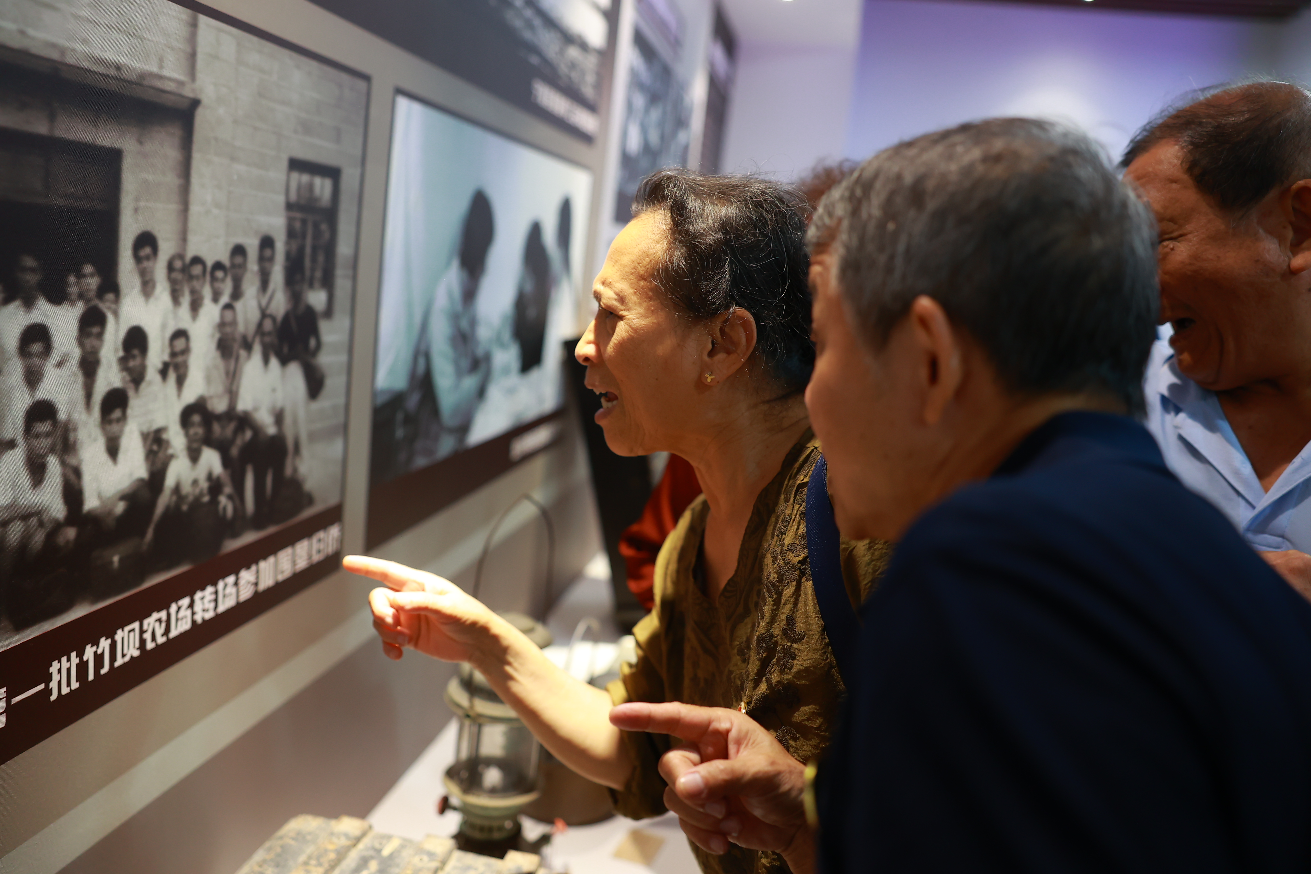 歸僑們或?qū)χ险掌v足凝視,或互相交流,或眼角泛起淚光。這里記載著他們響應(yīng)號召、離鄉(xiāng)背井,投身東湖塘圍墾建設(shè)的壯舉;鐫刻著他們克服艱難、揮灑汗水,將一片灘涂變?yōu)榱继镂忠暗膴^斗足跡。場史館不僅是一座歷史的豐碑,更是幾代歸僑青春與奉獻(xiàn)的見證,勾起了大家心中最深沉的集體記憶。