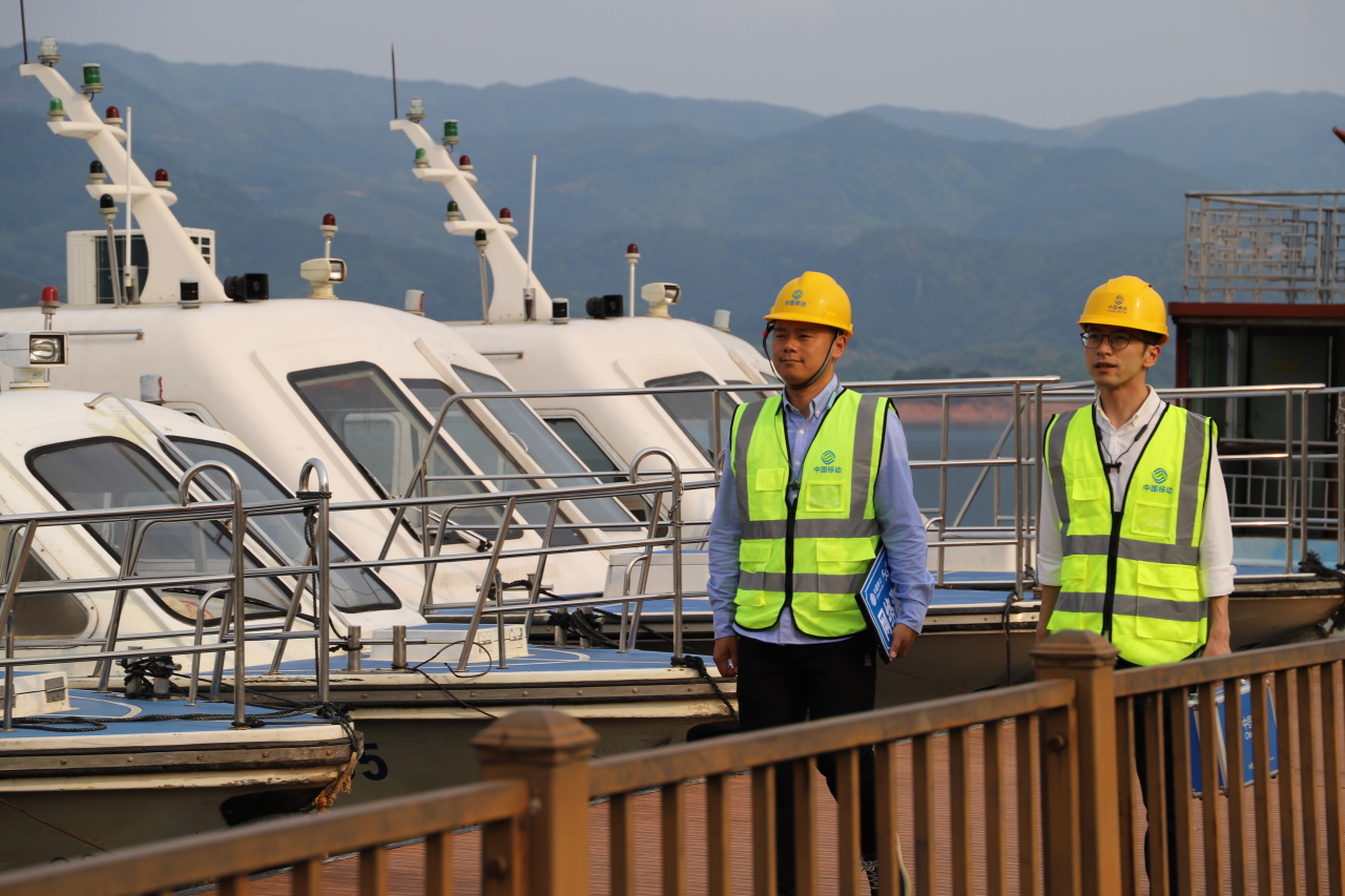 寧德移動工作人員在古田翠屏湖景區(qū)測試優(yōu)化網(wǎng)絡信號