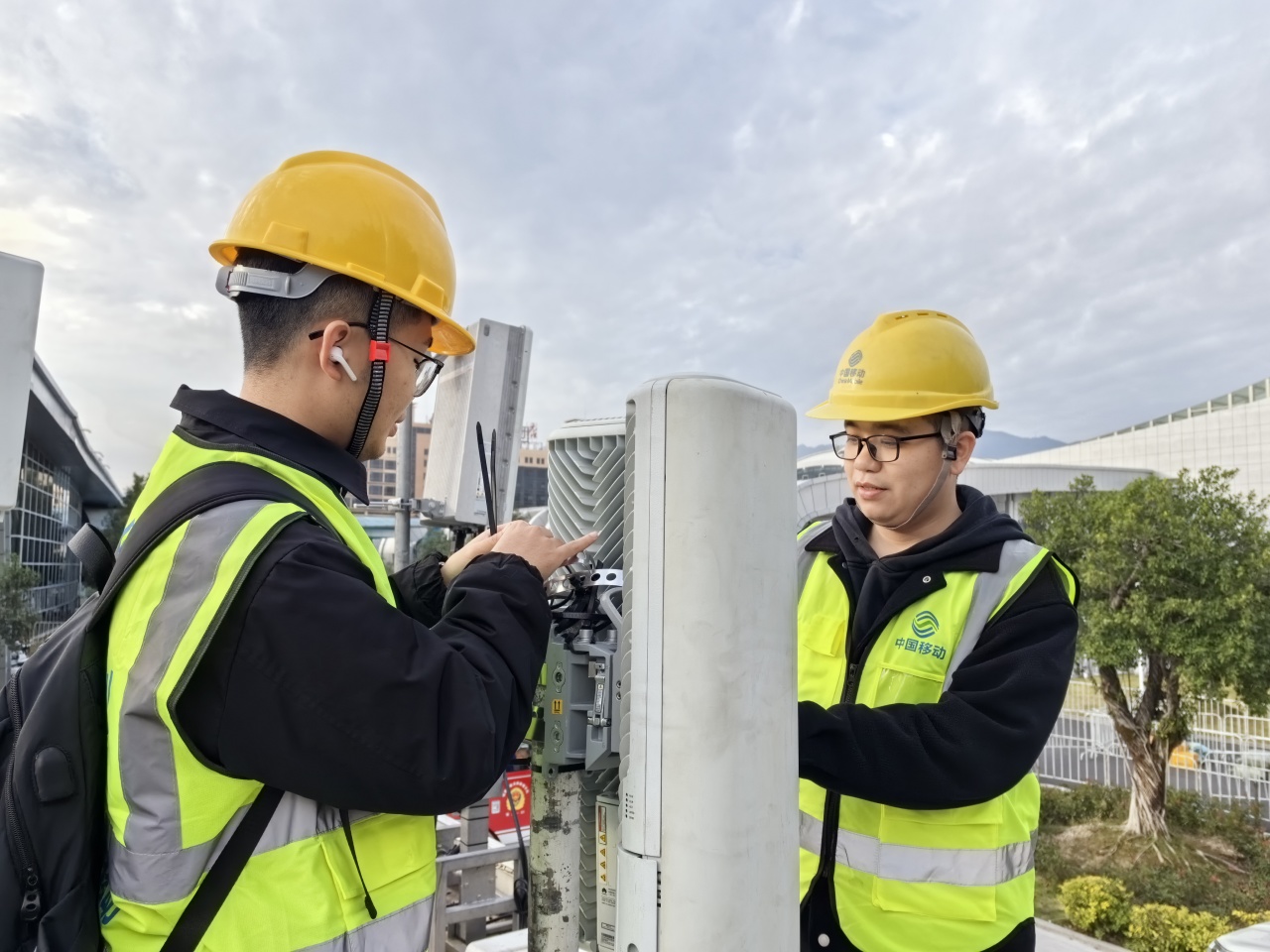 寧德移動工作人員在三都澳迎賓館及南北岸地區(qū)部署通感一體設備