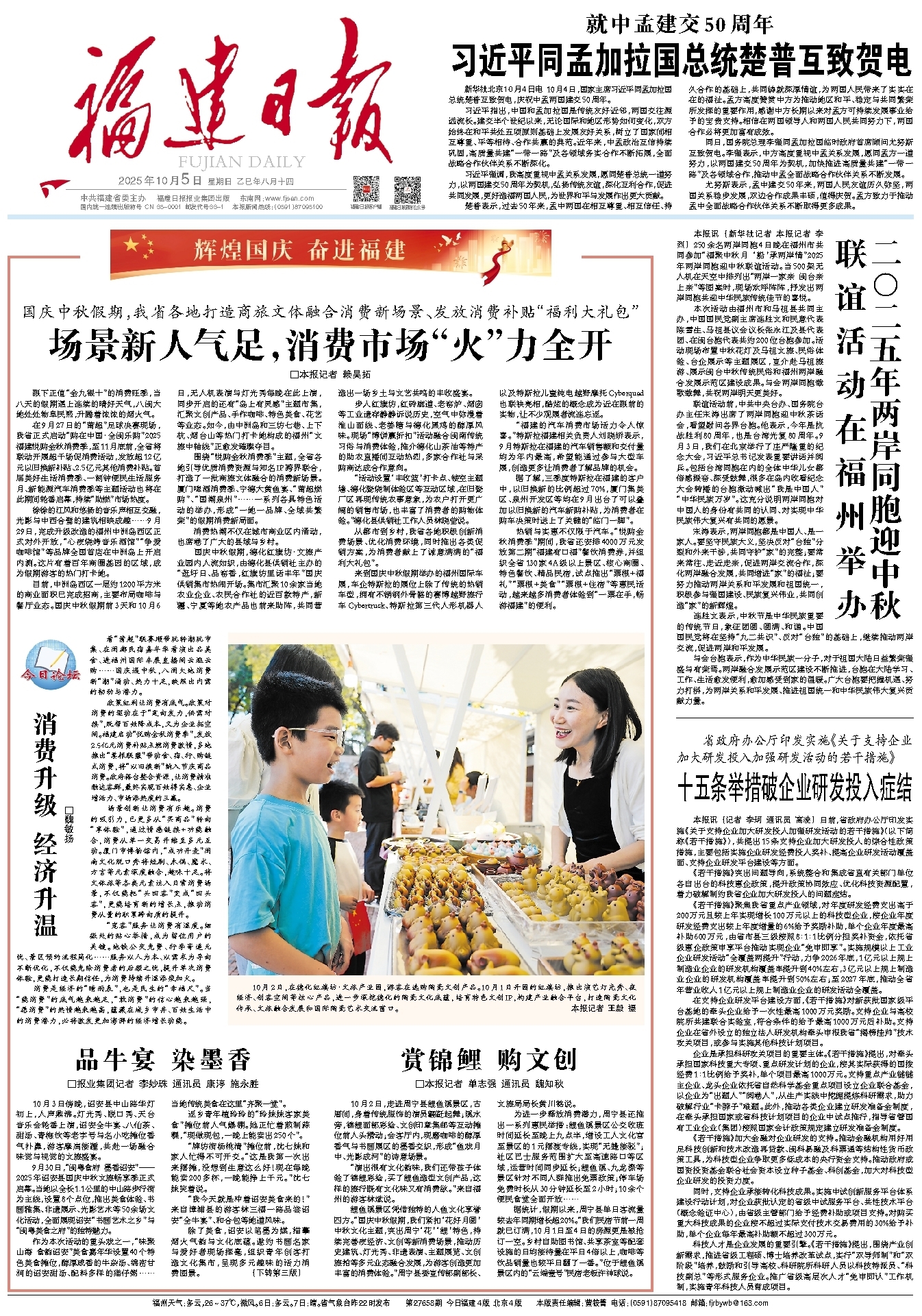 10月2日,走進(jìn)周寧縣鯉魚溪景區(qū),古厝間,身著傳統(tǒng)服飾的演員翩躚起舞;溪水旁,錦鯉面部彩繪、文創(chuàng)印章集郵等互動(dòng)攤位前人頭攢動(dòng);會(huì)客廳內(nèi),現(xiàn)磨咖啡的醇厚香氣與書畫展區(qū)的墨香交織,形成“魚戲月中、光影成河”的詩(shī)意場(chǎng)景。